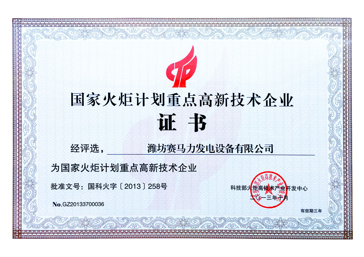 山东赛马力发电设备有限公司成立于2007年6月,是一家集产学研为一体的高端、智能、环保发电设备研发及生产的高新技术企业,核心产品为柴油和气体发电机组。先后被认定为第一批国家“专精特新”小巨人、山东省制造业单项冠军、山东省中小企业隐形冠军、山东省瞪羚企业等,建有中俄新能源发电研发基地,山东省企业技术中心等多个技术研发平台,拥有专利60余项。